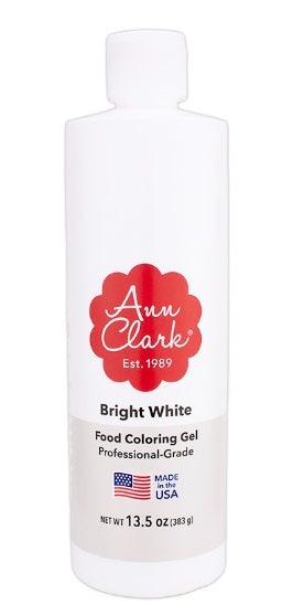 NEW! Ann Clark Bright White food coloring gel in extra large 13.5 oz. squeeze bottle provides a brilliant, pure white for flawless wedding cakes, frosting or cookie icing. Also creates beautiful, soft pastels when mixed with colors. Create cake and cookie decorations that pop: High-contrast lettering, florals and details, or an opaque white base layer for vibrant subsequent color layers.