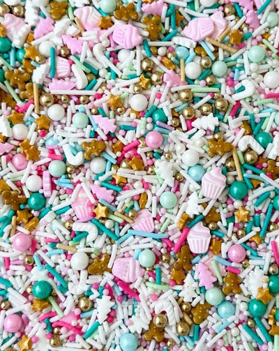Bring whimsy to your desserts with this wonderland that is Nutcracker Sweet Sprinkle Medley Deluxe. Featuring adorable candy shapes, pastel hues and shimmering gold accents, these adorable sprinkles add a playful and elegant touch perfect for cupcakes and holiday treats. Let your creations sparkle with the magic of this one of a kind mix.