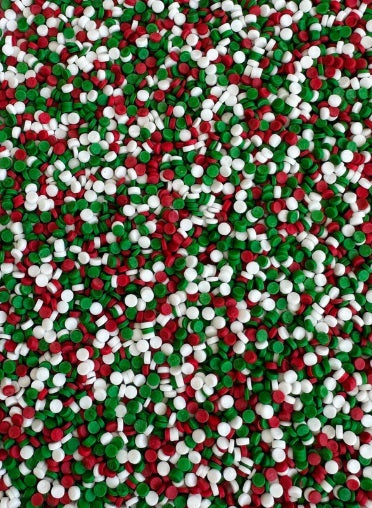 Add classic festive fun to your treats with our adorable Teeny Tiny Christmas Sequins (~3mm). These charming little quins are perfect for decorating cookies, cupcakes, and more, bringing a playful holiday spirit to every bite. Made in Canada.