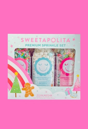 This adorable set includes a 3.5oz bottle of each of these holiday Sprinkle Medleys: