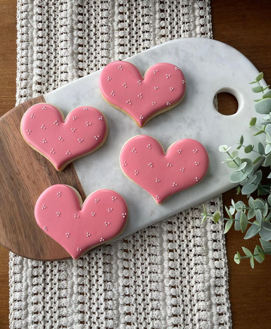 One dozen heart cookies - variety of patterns and colours. Individually heat sealed for Valentine gifting.