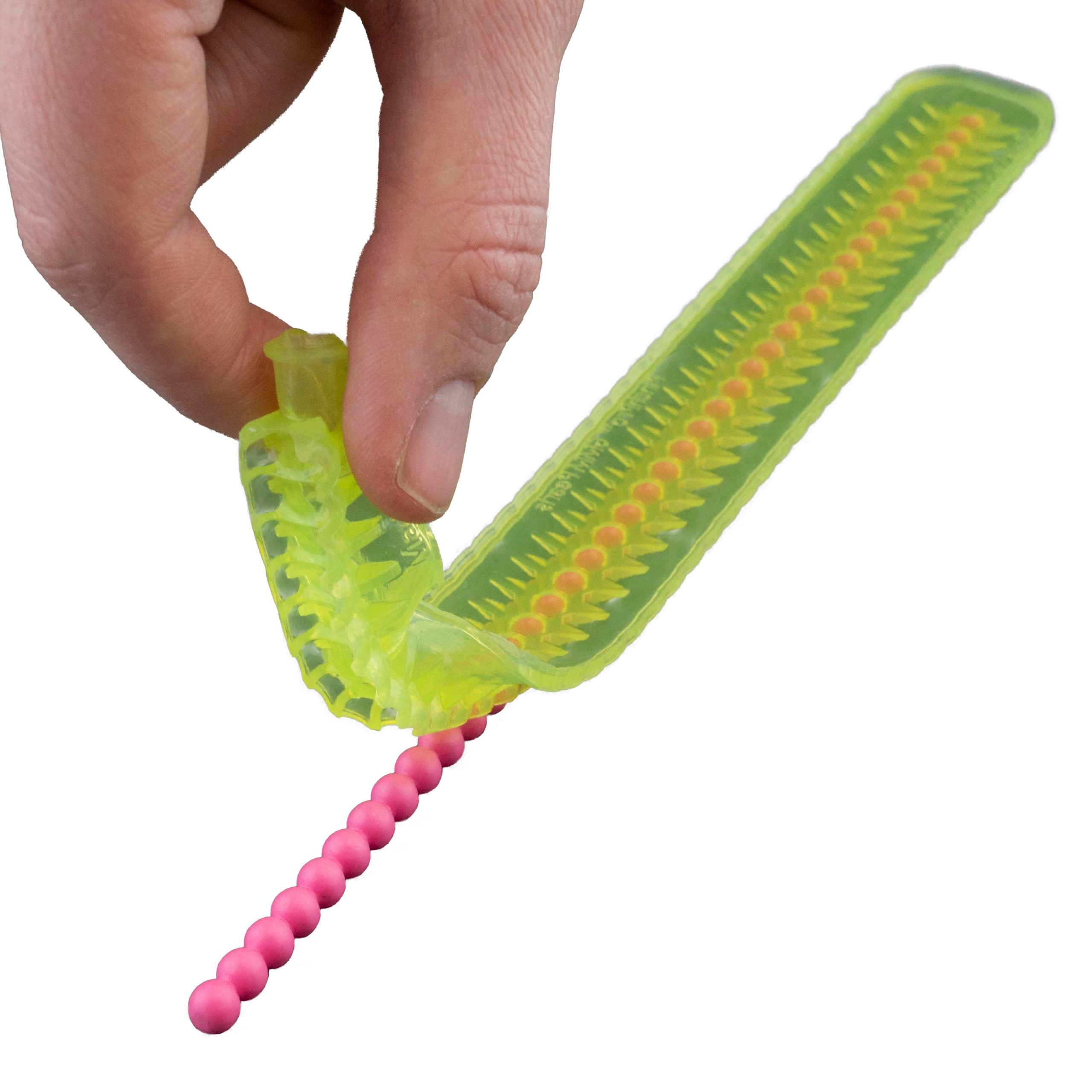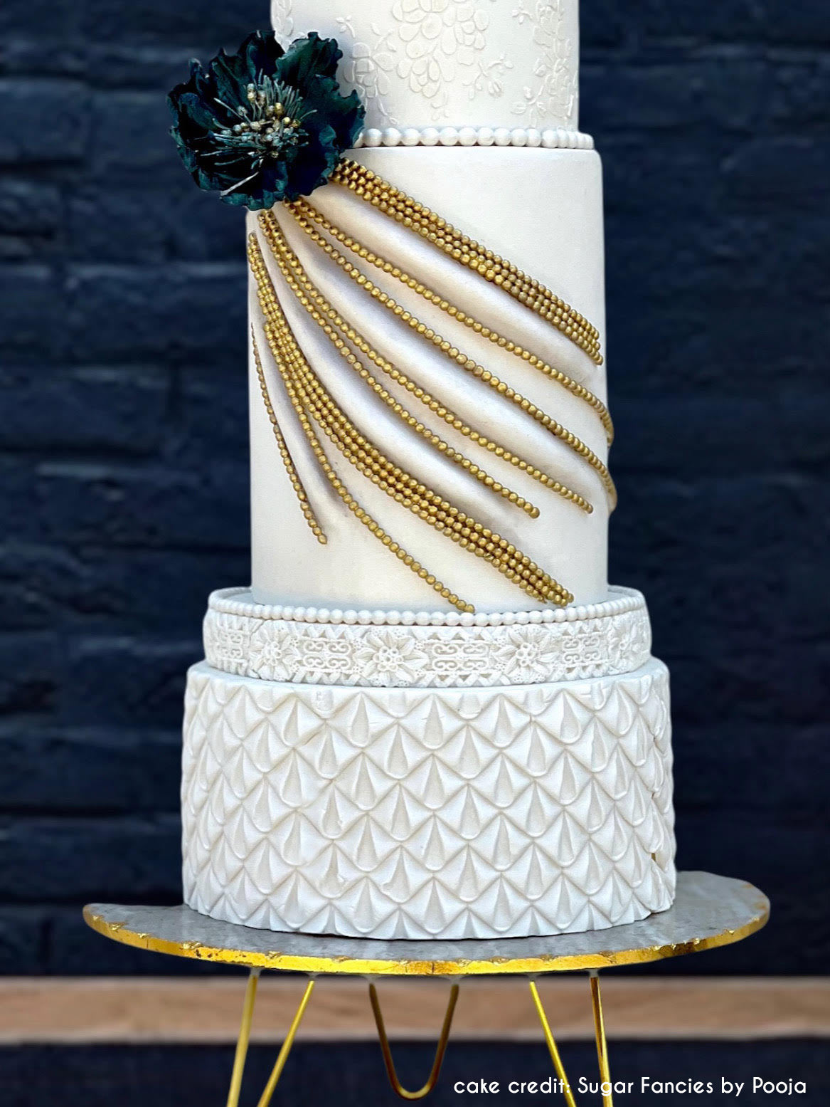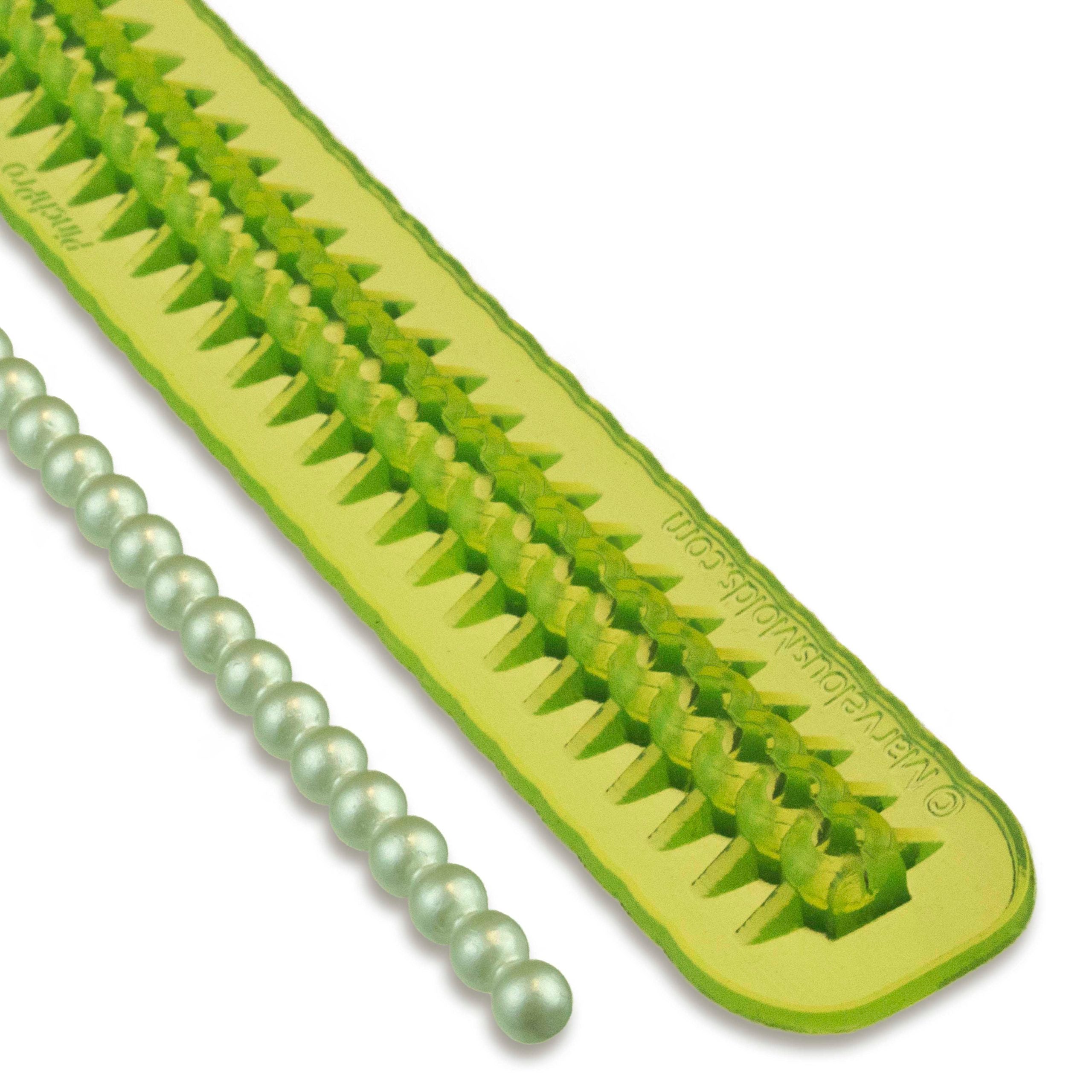 A string of pearls cake border has been one of the most popular and time honored cake decorations for years. After much encouragement from our customers, we decided to innovate a truly superior silicone mold that brilliantly produces a string of beads that are almost completely whole and perfectly formed every time. Unlike the blocky, awkward pearl molds of the past, the PinchPro String of Pearls Mold is a sleek, cutting edge silicone mold that has been designed to be easily filled with fondant, gumpaste, marzipan, chocolate, sugarpaste, boiled sugar and modeling paste. More importantly, this amazing mold literally unmolds itself when pinched to open.